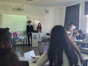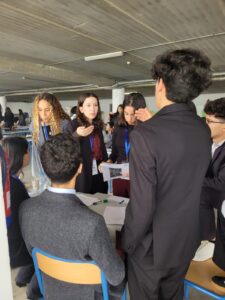 Nos élèves ont brillamment représenté un pays dans des débats autour de l’accueil des réfugiés, du désarmement ou du contrôle des économies de guerre. Une situation de crise leur a été soumise le dernier jour des débats, les poussant à collaborer dans l’urgence pour trouver des solutions pragmatiques à un danger imminent.
