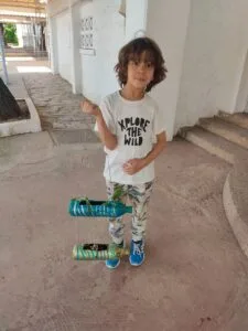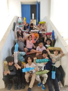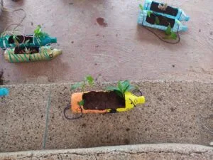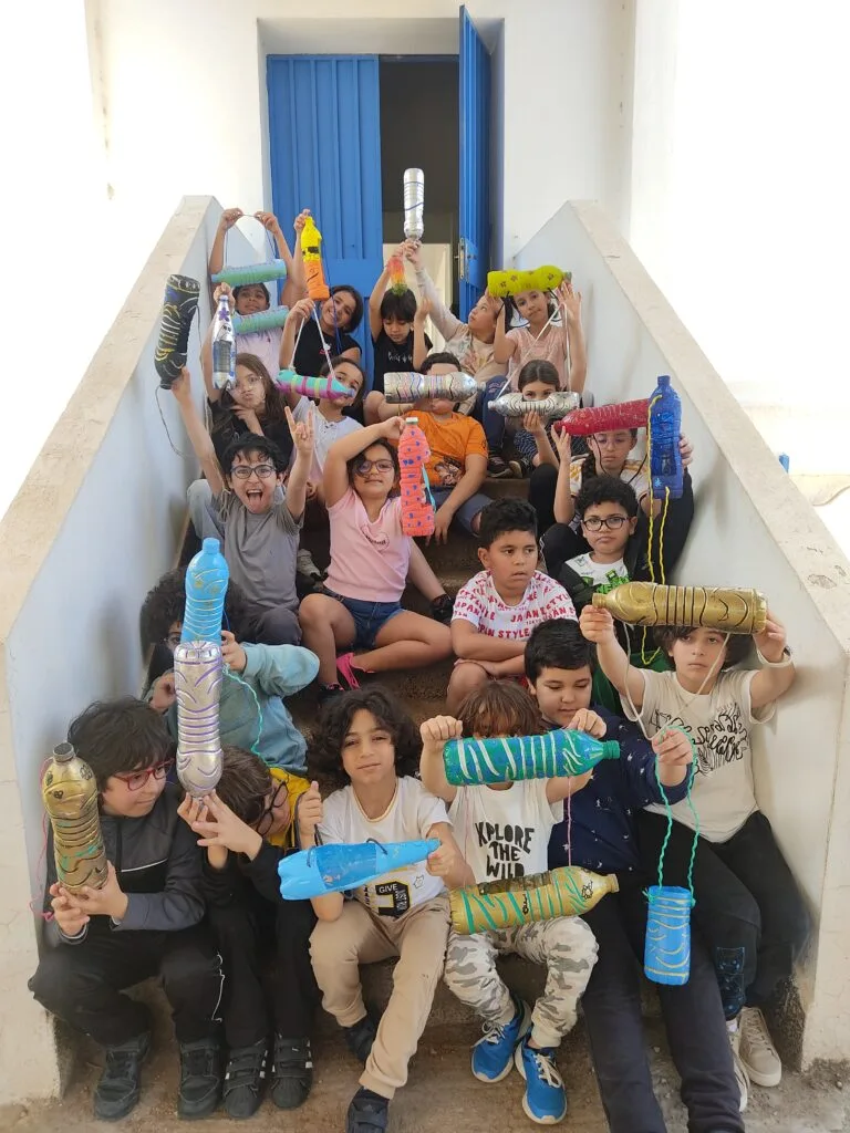 Auparavant, ils avaient peint des bouteilles en plastique, prédécoupées par les parents. Puis, ils les ont décorées sous la houlette de Mme SAGHIRI Samira.