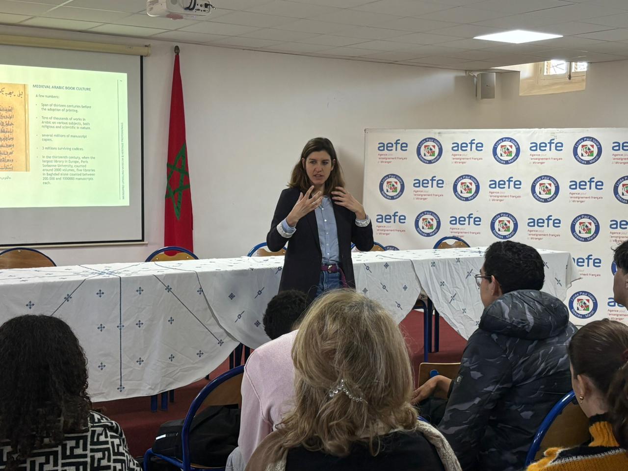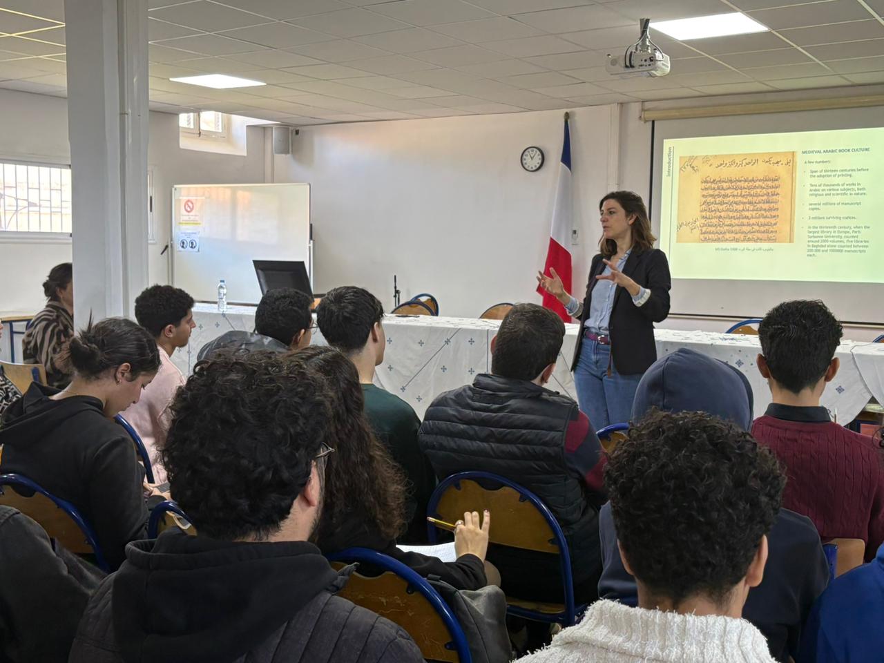 Ils ont également eu le privilège d’accueillir au sein de notre établissement Madame Pauline KOETSCHET, chargée de recherche au CNRS et spécialiste de l’histoire de la philosophie arabe, pour une conférence intitulée « Philosophie et médecine ». Cette rencontre a donné lieu à des échanges riches et stimulants, suscitant un réel intérêt chez nos futurs étudiants.
