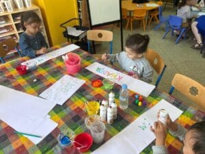 👩🍳 Les jeunes élèves ont ensuite enfilé leurs toques de petits chefs, fièrement préparées et décorées par leurs soins, avant de passer à la pratique !