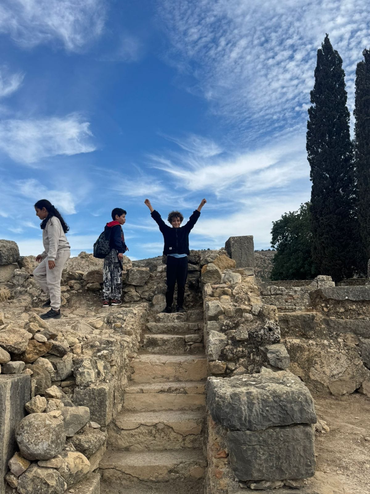 Vendredi 7 novembre, tous les élèves de CM1 ont vécu une magnifique journée de découverte à Volubilis, l’un des plus beaux sites archéologiques du Maroc.